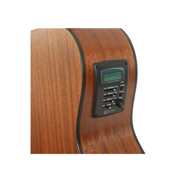 Crafter HC-100ce/VS è una chitarra classica elettrificata con top in abete, fondo, fasce e manico in mogano, e preamp CR-T NV.