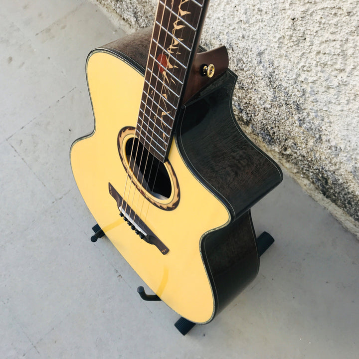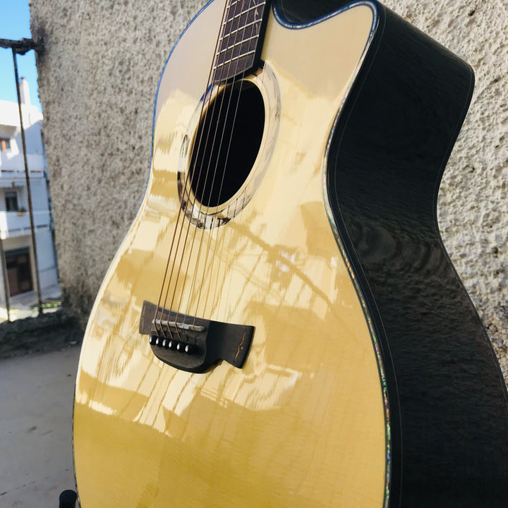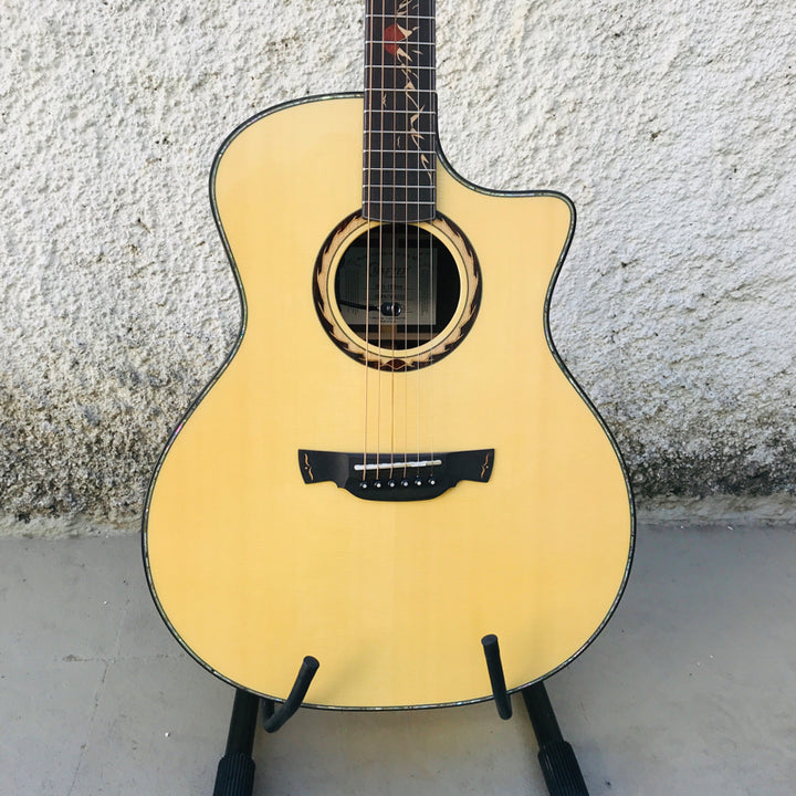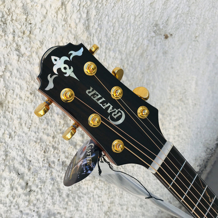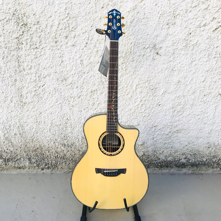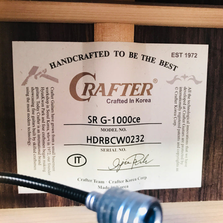 La serie SR-G 1000ce di Crafter mette in risalto la decennale abilità dei liutai Koreani, unendo legni pregiati scelti con cura e assemblati in maniera minuziosa, il tutto per dare forma ad una chitarra completamente di legni massicci che risalta al meglio le caratteristiche di una chitarra acustica. Timbrica, profondità e il grande volume di questa chitarra la rendono perfetta per ogni genere e stile musicale potendo far uscire ogni sfumatura sonora. Top in Abete Engelmann massello, fondo e fasce di Palissandro massello, manico di mogano e tastiera in palissandro. Il suo C-shape e l'action molto confortevole consentono di sfruttare l'intera tastiera fino ai tasti più alti. Pre amp DS-2 microfono direzionale più piezo, colore Natural, finitura lucida, custodia rigida compresa.