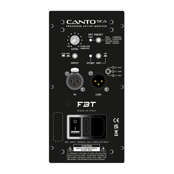 Il modello Canto 5 CA della famiglia Canto Install, ha un tweeter a cupola coassiale da 5'' LF con 1'5' VC e 1'' HF con 1'' VC. Con una dispersione di 90°, questo robusto diffusore in polipropilene iniettato a gas presenta anche involucri stampati che gli permettono di evitare risonanze indesiderate. Grazie al segnale digitale integrato, Canto 5CA lavora con equalizzazioni dinamiche e protezioni per un'elevata SPL e un'elevata affidabilità, mentre gli amplificatori HF in classe D da 100W LF + 50W garantiscono il suono perfetto per ogni tipo di installazione interna. Inoltre, la massima flessibilità acustica è garantita anche da 4 preset DSP.