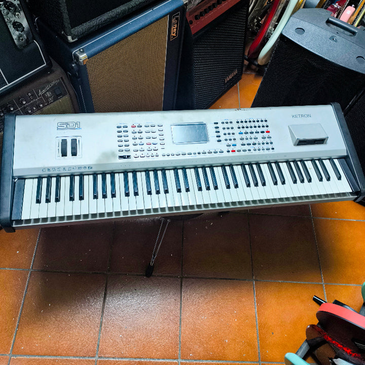 La Ketron SD1 è una tastiera arranger con 76 tasti semipesati e aftertouch, polifonia di 64 note e 32 multitimbral. Offre 310 preset programmabili, 350 voci GM e 128 voci utente. L'arranger include 131 nuovi stili Flash e 168 stili ROM, con funzioni come auto-accadimento, tap tempo, e introduzioni/finali interattivi. Supporta il caricamento di suoni da file WAV, MSP e INS su 16MB di RAM.