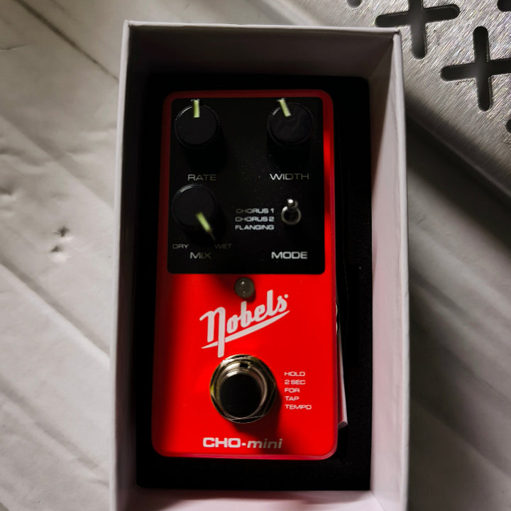 l pedale CHO-mini Chorus di Nobels è ideale per i musicisti che cercano un effetto di modulazione versatile e compatto, adatto sia al sito live che alle configurazioni in studio. Offre tre modalità di chorus distinte, Chorus 1, Chorus 2 e Flanging, che catturano i toni iconici dagli anni '70 a oggi. La funzione tap tempo del pedale consente di regolare con precisione il tempo al volo, mentre le uscite selezionabili mono o stereo lo rendono compatibile con una varietà di impianti. Inoltre, la scelta di un bypass vero o bufferizzato garantisce un'integrazione perfetta in qualsiasi catena di segnale. Con un involucro di metallo resistente e manopole fosforescenti, è costruito per essere performante ovunque si suoni.