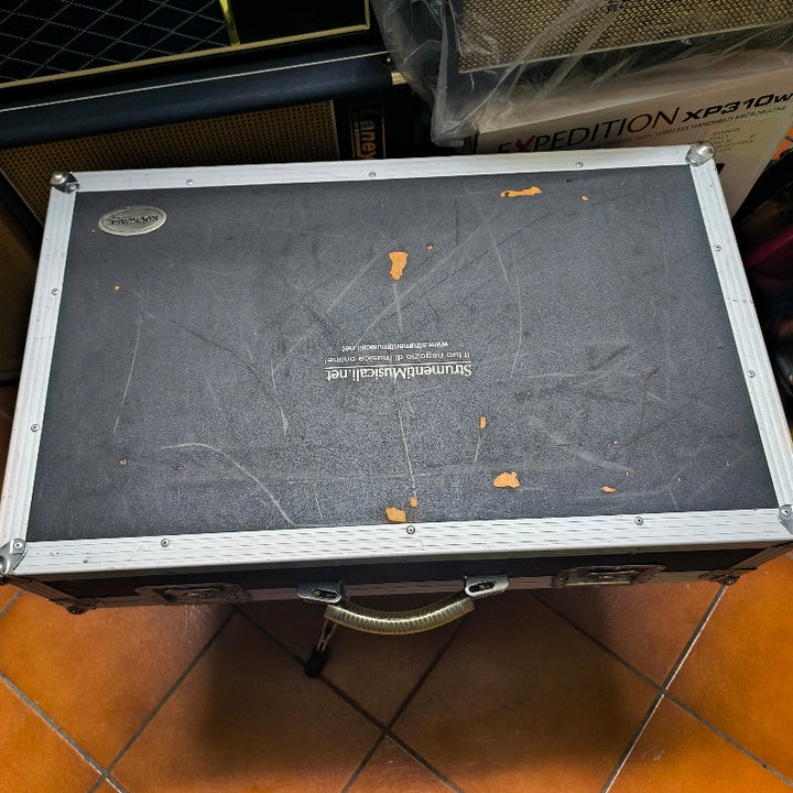 Flight case realizzato in multistrato da 8 millimetri rivestito in PVC nero. Dotato di alimentatore da 400mA per alimentare fino a 6 effetti a pedale (5 da 9V ed 1 da 12V). E' dotata di due chiusure a farfalla, nastro in velcro per fissare gli effetti a pedale, piedini in gomma e coperchio rimovibile rivestito in gommapiuma [⚠️ Vedi Gmusic Note].