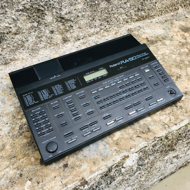 ROLAND RA-50 Realtime Arranger 1980s Modulo Sintetizzatore con Suoni Pianoforte, Percussione, Fiati e Accompagnamento di Batteria / Basso più Effetto Riverbero [Vintage]