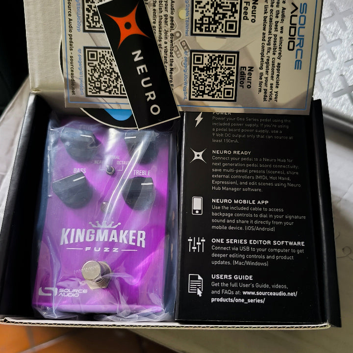 Il Kingmaker Fuzz dispone di un telaio compatto, ma all'interno di questa centrale elettrica viola vivono i suoni frizzanti di oltre 50 anni di tecnologia fuzz e overdrive. Di per sé il Kingmaker dispone di tre motori fuzz killer, ma collegalo all'app Neuro Mobile (scaricabile gratuitamente per iOS e Android) e accedi ad una massiccia raccolta di overdrive, fuzz e distorsioni aggiuntive con un EQ parametrico con ampie capacità, routing stereo, e funzionalità di impilamento interno. Il Kingmaker Fuzz è il culmine di uno studio, durato otto anni, su suoni overdrive classici combinati ad una tecnologia moderna altamente sofisticato - si tratta di un pedale fuzz senza eguali. Quando viene utilizzato assieme al Neuro Hub, il Kingmaker Fuzz è completamente MIDI-controllabile ed è possibile salvare 128 preset multi-pedale o "scene", per il richiamo istantaneo sul palco o in studio. Collega il Neuro Hub a qualsiasi pedale di espressione Source Audio, al controller wireless Hot Hand 3 oppure a pedali di espressione di terze parti TRS (Tip Hot) per un controllo "on-the-fly" di qualsiasi parametro regolabile.