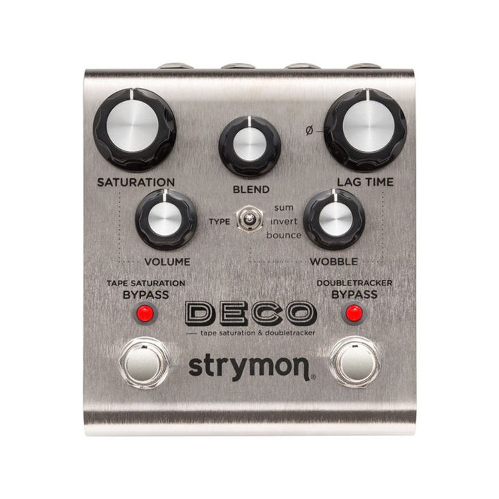 lo Strymon DECO ci riporta indietro l’ispirazione originaria e la creatività delle macchine a nastro magnetico utilizzate negli studi di registrazione agli inizi degli anni ’50 e ’60, dandovi la possibilità di inserire direttamente nella vostra pedaliera questi ormai introvabili effetti vintage. Il DECO è composto da due sezioni di effetti attivabili ed editabili separatamente, Tape Saturation e Doubletracker; i controlli della sezione Tape Saturation porteranno al vostro suono una naturale compressione ed una musicale saturazione, mentre l’overdrive trasparente lo renderà più grosso e ricco in frequenza.
