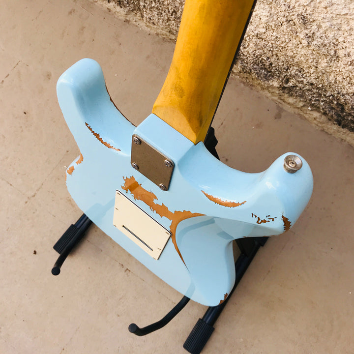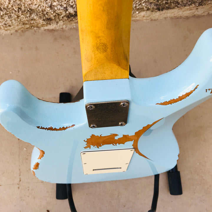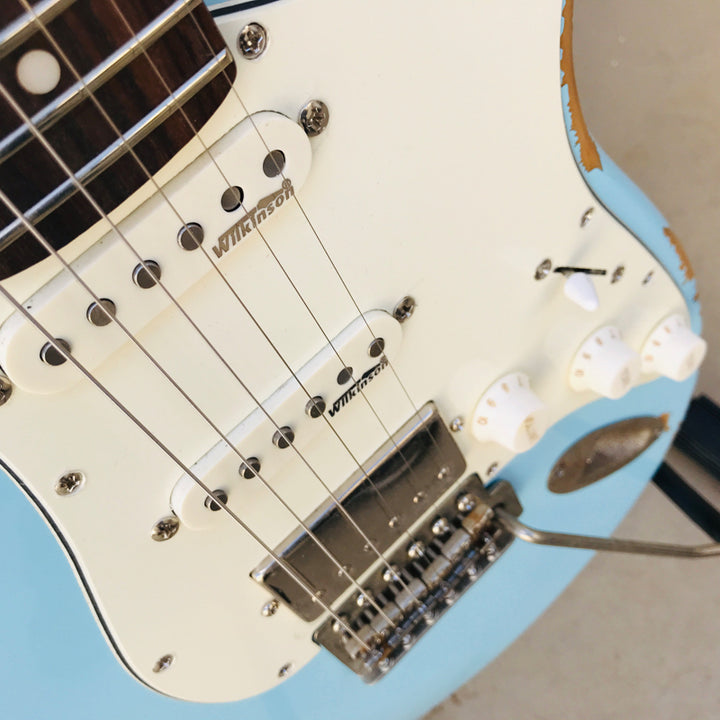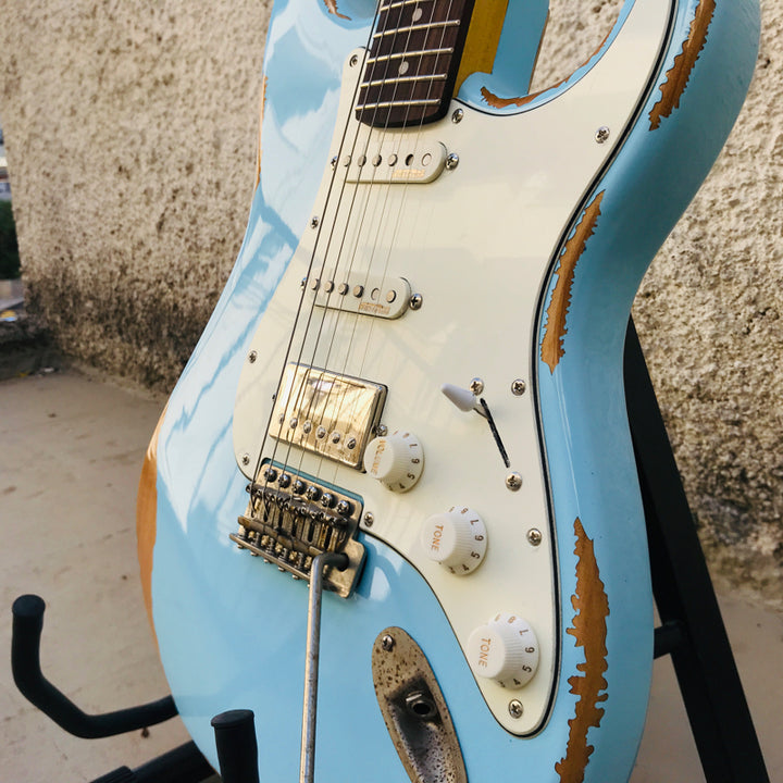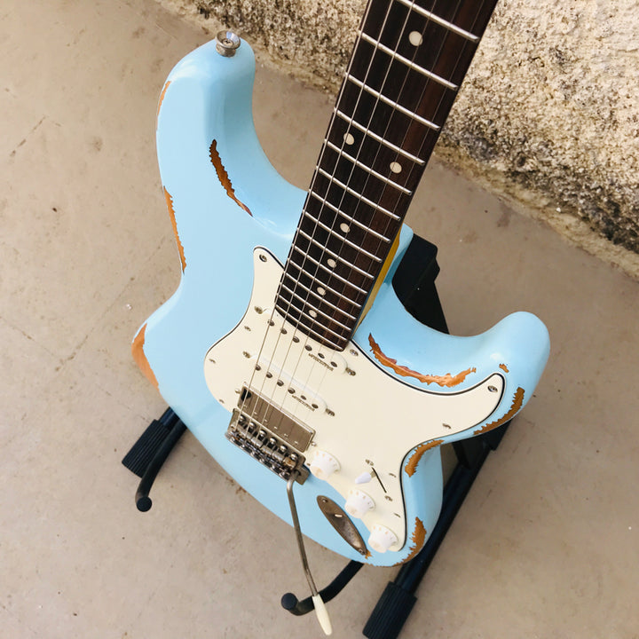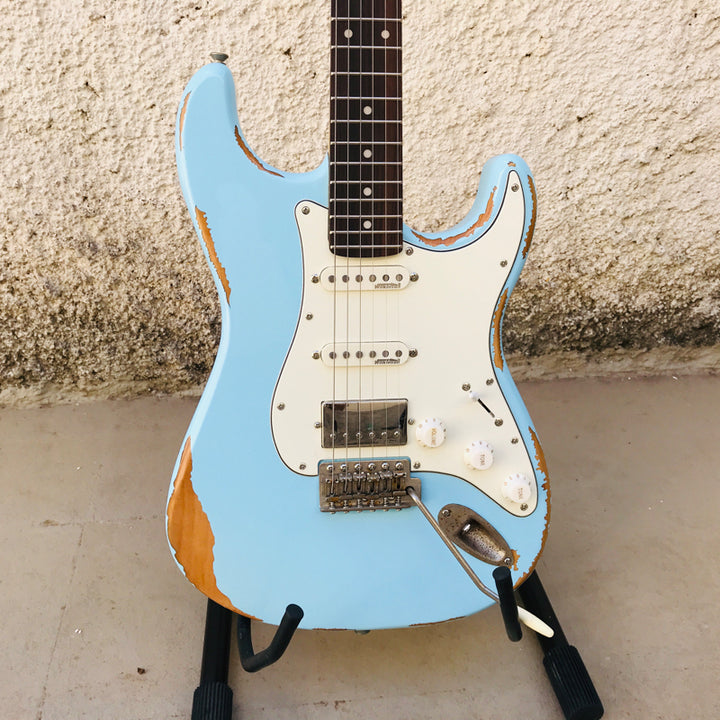VINTAGE V6 Icon HSS Aged Gloss Relic Distressed Laguna Blue Electric Guitar